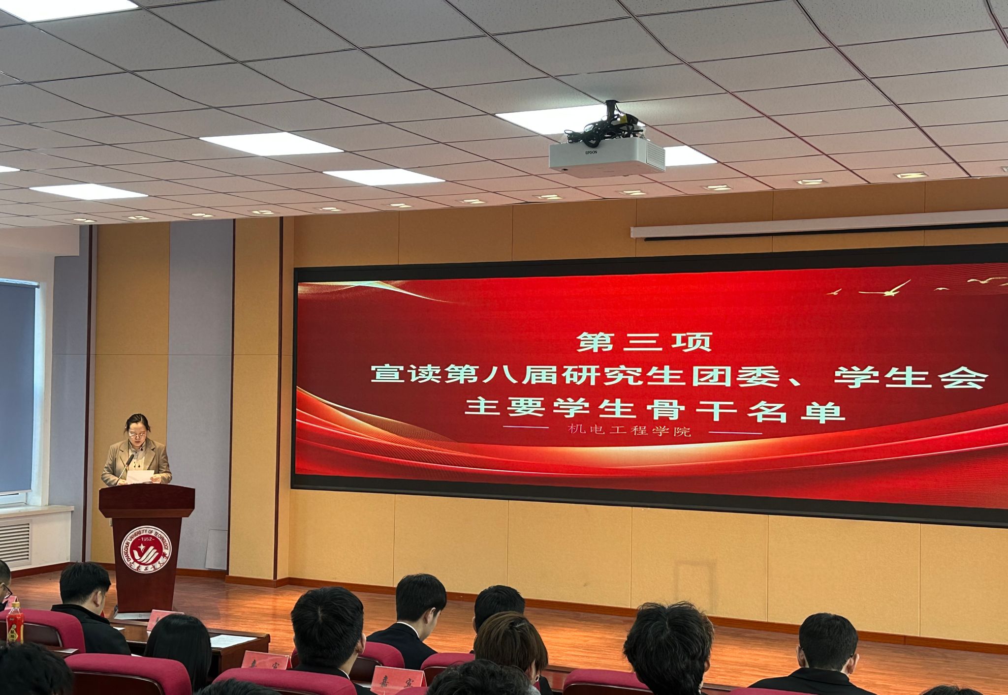 张龙娇老师宣读研究生团学组织主要骨干名单