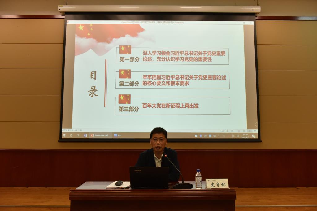 史守林副经理是学习贯彻党的十九届四中全会、五中全会精神省委宣讲团成员、长春市委宣讲团成员、党史学习教育省委宣讲团成员、长春市委宣讲团成员。报告从“深入学习领会习近平总书记关于党的历史重要论述、充分认识学习党的历史的重要性,牢牢把握习近平总书记关于党的历史重要论述的核心要义和根本要求,百年大党在新征程上再出发”三个部分展开;结合习近平总书记关于党的历史的论述,从中国共产党百年历史中感悟初心使命、增强信仰信念信心、积累自我革命经验、提高斗争本领四个方面阐述了学习党史的重要性。