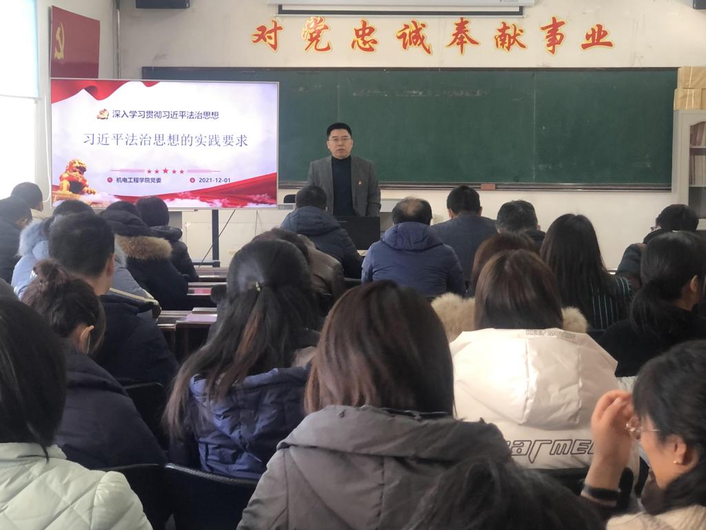 本网讯(通讯员 周子明)12月1日,44118太阳成城集团组织全体教师进行政治理论学习,认真学习贯彻习近平法治思想的实践要求,学习会由党委书记李奇涵主持。