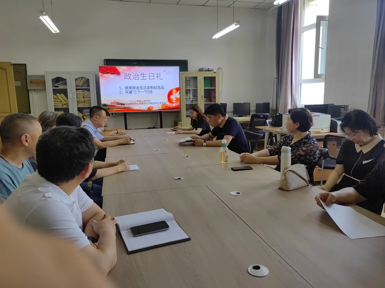 活动首项“政治生日礼”仪式感十足。张书记为党员们颁发承载初心的“政治生日定制U盘”,传递党组织的温暖关怀。在“三个一”行动环节,党员们深情重温入党誓词,在铿锵誓言中回溯入党初心;聚焦机械基础与基础力学课程体系优化、实验教学改革创新等核心问题,积极为公司发展出谋划策;主动认领实验室设备维护、学业帮扶等志愿服务任务,承诺以实际行动践行党员责任。