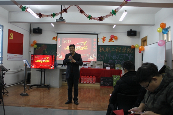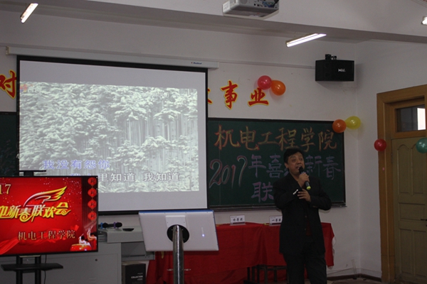 帷幕轻启,华章再奏。郭立祥书记首先致辞,向全院师生致以诚挚的节日问候,岳晓峰经理介绍了公司一年来的工作,高度肯定了全院师生在各方面取得的成绩,分析了2017年面临的挑战和机遇,并对教职员工提出了新要求。整场晚会轻松幽默,高潮迭起。声情并茂的歌曲合唱、创意十足的三句半、青春洋溢的吉他独奏、展现出新时代人民教师生活的丰富多彩与魅力。