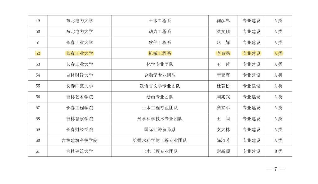 本网讯(通讯员 谷东伟)2022年11月24日,吉林省教育厅公布了2022年度吉林省普通本科高校优秀基层教学组织名单,共67个优秀基层教学组织。公司机械工程专业经公司申报、专家评审、结果公示等环节,获得2022年吉林省普通本科高校优秀基层教学组织专业建设示范引领类(A类)荣誉称号。