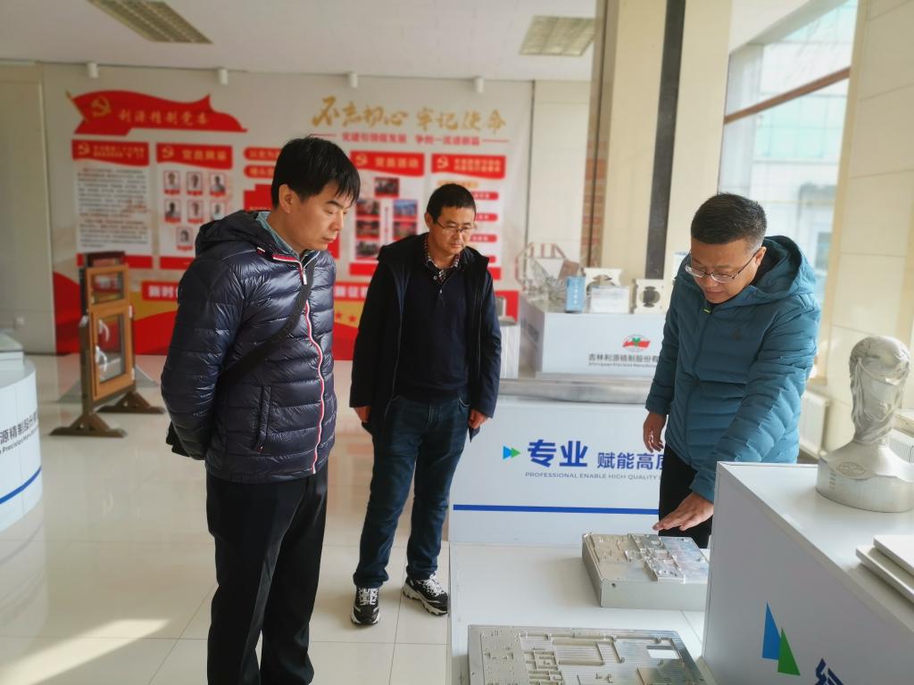 在吉林利源精制股份有限公司研发院范金龙经理的陪同下,郝兆朋一行参观了企业展厅,详细了解了企业发展历程、建设规模、业务领域、产品研发应用等情况。