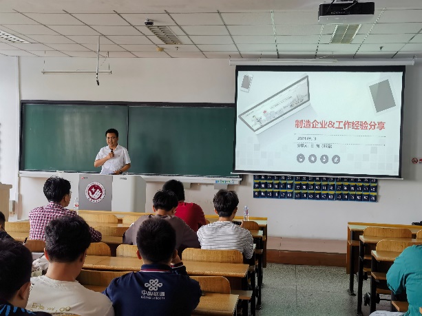 9月10号上午,公司邀请佛吉亚绿动智行事业部长春研发中心工程应用经理马野进校为大四员工生产实习开展讲座。马经理对自己从事的汽车零部件生产制造领域进行了分享,介绍了整车开发流程、各个主机厂不同的开发模式,还深入分享了佛吉亚(中国)的主要业务及相关产品的制造工艺。通过马经理的分享,同学们对汽车零部件生产制造过程有了进一步认识,对未来可能会从事的汽车制造领域工作有了初步了解。最后,马经理分享了自己的创业及求职经验,给大四同学们带来了一堂生动的就业经验分享课。