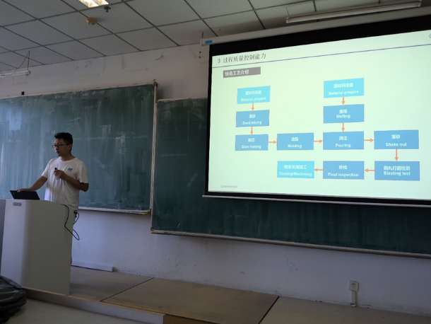 9月10号下午,公司邀请长春泰盟机械制造股份有限公司质量经理谷东明进校为大四同员工产实习开展讲座。谷经理以制动盘质量控制概述为主题对自己多年从事汽车零部件生产制造领域的经验进行了分享,介绍了制动盘的工作原理、质量控制要求、过程质量控制能力、质量追溯过程等,还深入分享了长春泰盟机械制造股份有限公司的主要业务及相关产品的制造工艺。通过谷经理的分享,同学们对汽车制动盘生产制造过程有了进一步认识,对未来可能会从事的汽车制造领域工作有了初步了解。最后,谷经理结合了自己的工作经历畅谈了员工求职过程中需掌握的技巧,给大四同学们带来了一堂生动的就业经验分享课。