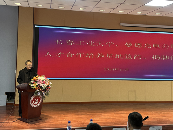 仪式开始时,公司党委书记张利军首先致辞,他对曼德光电公司一行的到来表示诚挚欢迎,并对双方合作的前景表达了美好期望。张利军书记表示,通过校企合作能够促进教育资源与企业需求的有效对接,为员工提供更加广阔的实践平台和就业机会,同时也为企业输送更多高素质、高技能的应用型人才,实现双方共赢的局面。