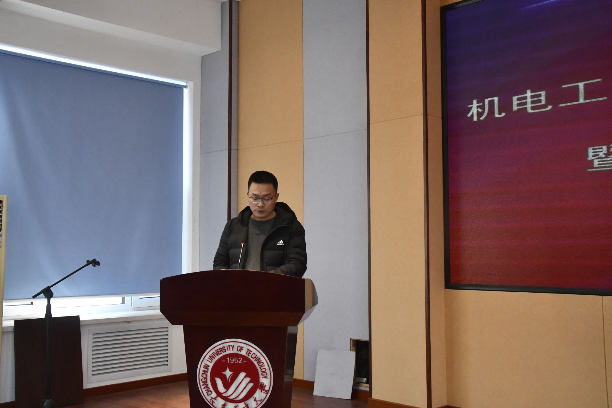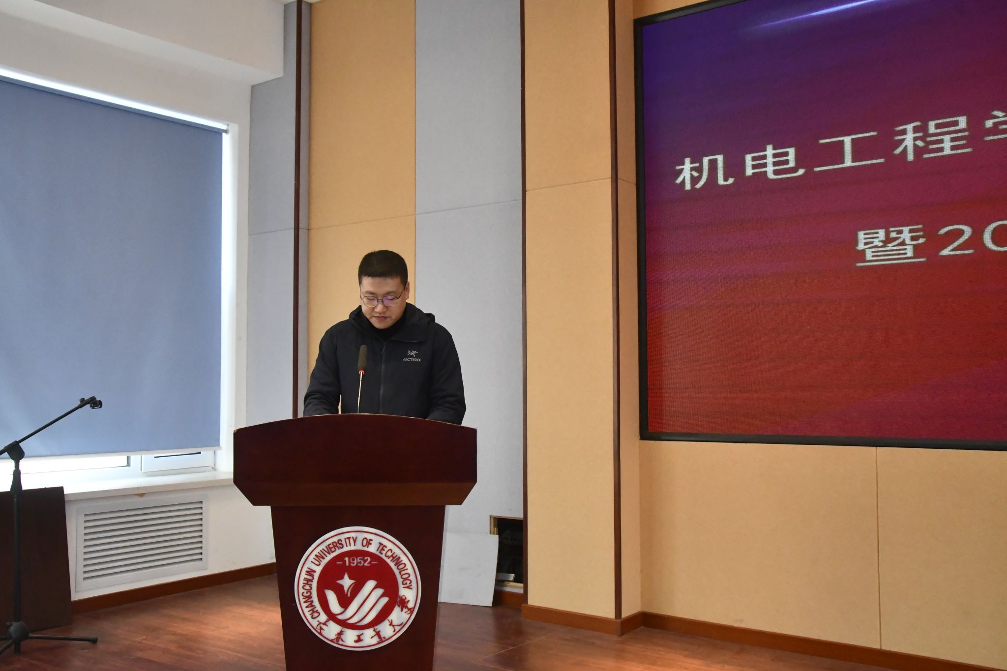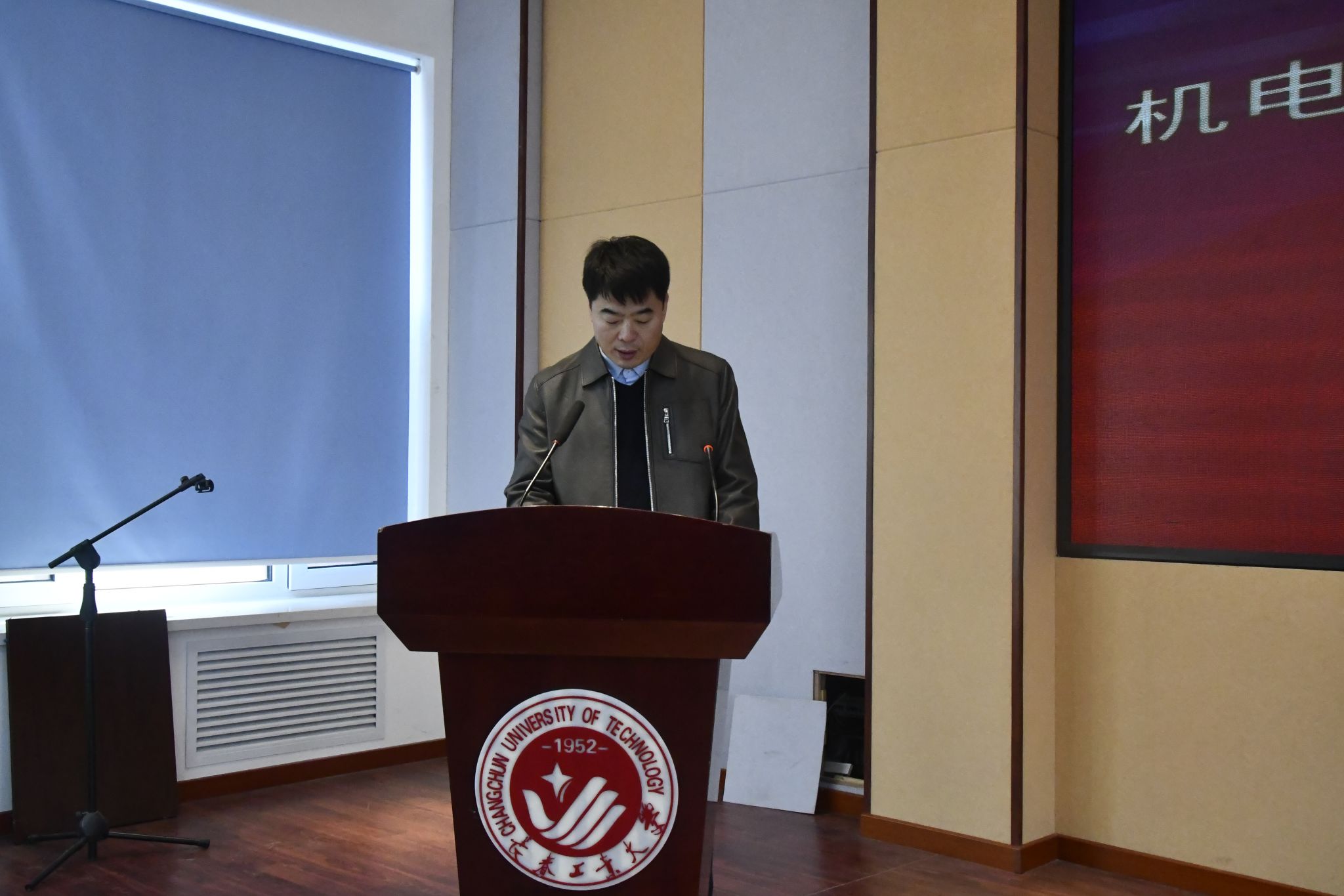 公司研究生工作领导小组常务副组长、机械工程系主任高嵩宣读公司关于聘任校内就业指导教师、就业信息员的决定