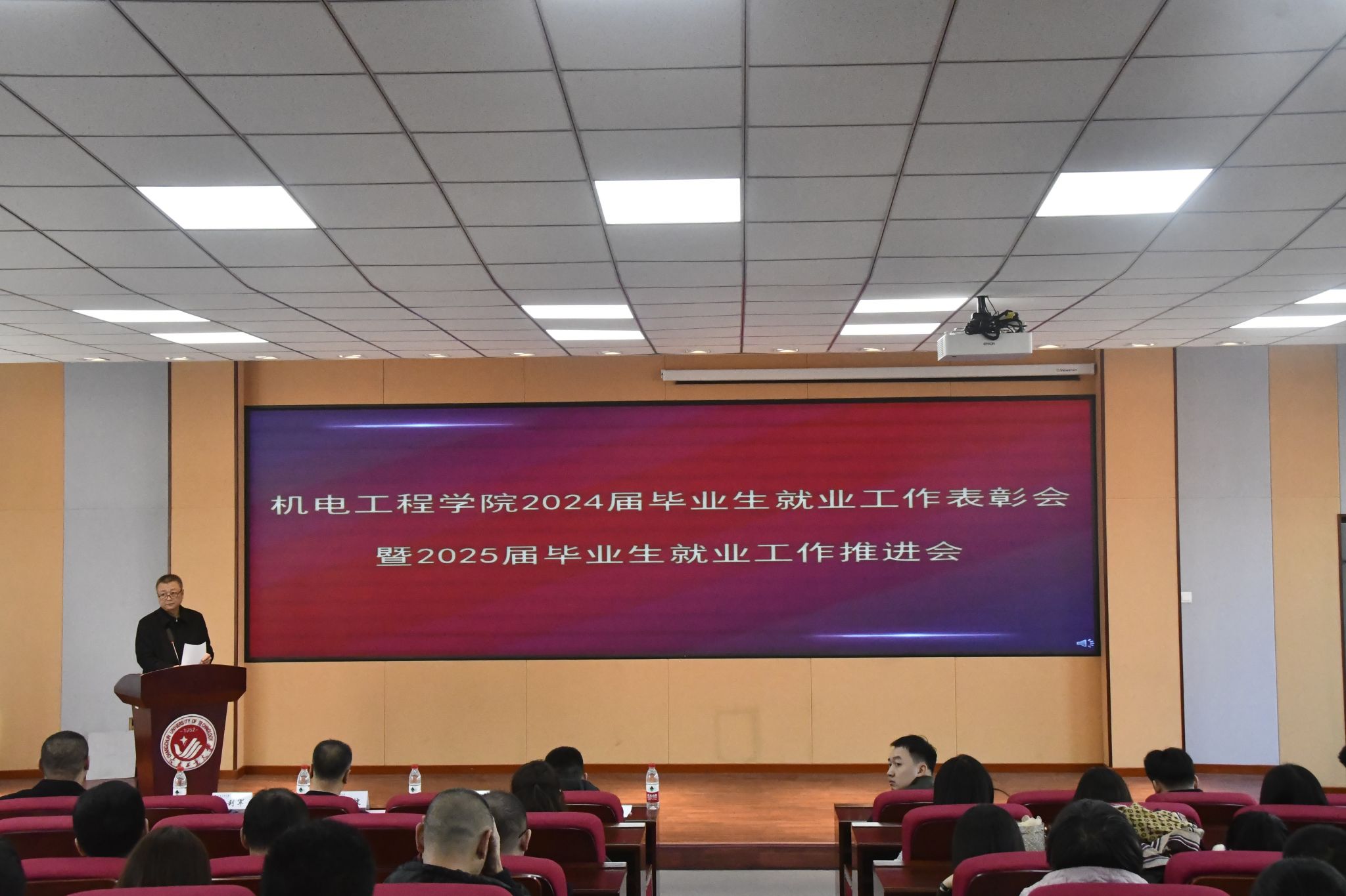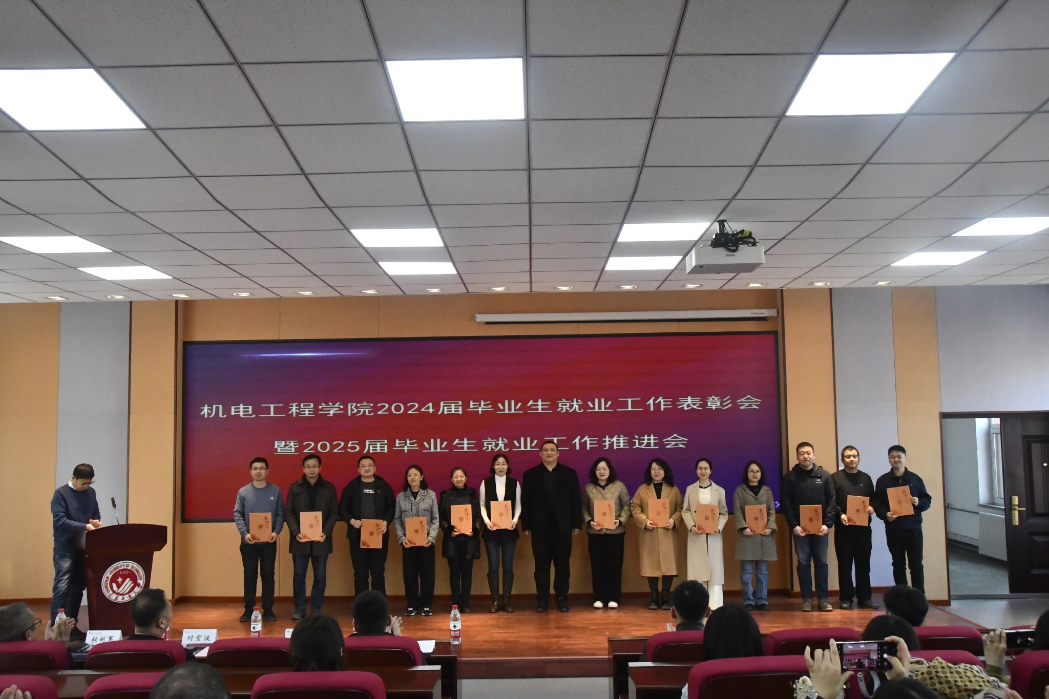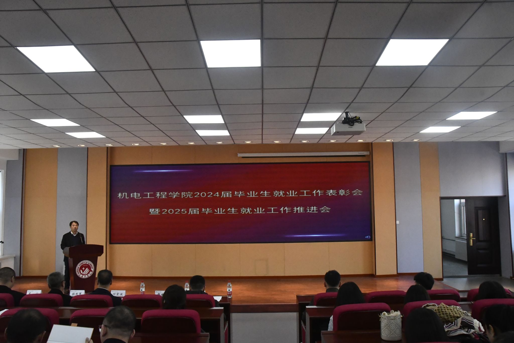 本网讯(通讯员 姜鸿乔)为总结学院2024年毕业生就业工作,推进2025年毕业生就业工作。11月13日中午,公司在南湖校区综合楼三楼报告厅召开2024届毕业生就业工作表彰会暨2025届毕业生就业工作推进会。公司人才招聘处处长付宏波、副处长高山,公司党委书记张利军、经理郝兆朋、党委副书记杨楠、副经理卢明明、公司就业工作领导小组成员、受表彰人员及公司全体教师参加了本次会议,会议由公司党委副书记杨楠主持。