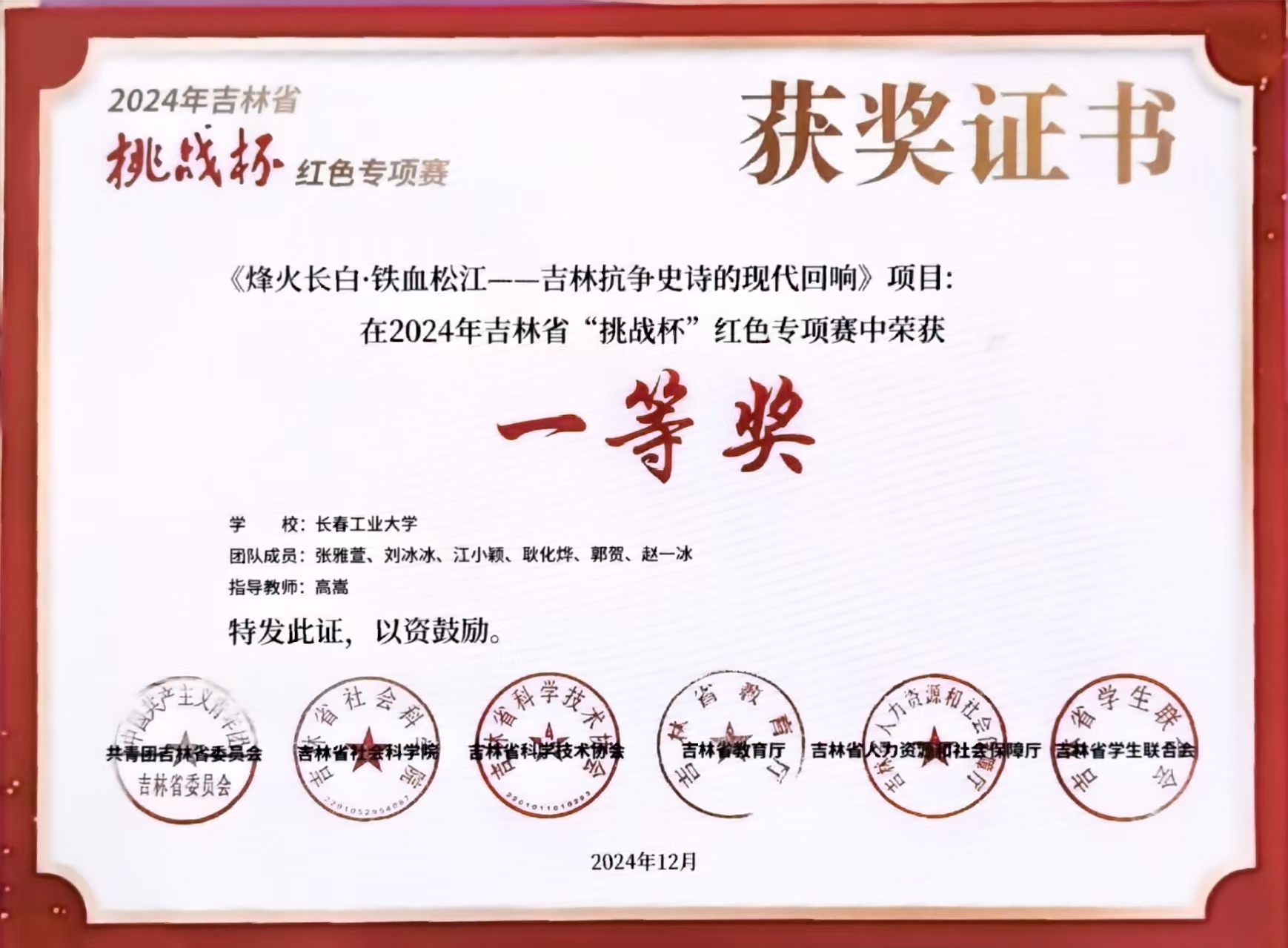 本网讯(通讯员 高嵩)近日,由共青团吉林省委员会、吉林省社会科公司、吉林省科学技术协会、吉林省教育厅、吉林省人力资源和社会保障厅、吉林省员工联合会联合开展的2024年吉林省“挑战杯“红色专项赛评选结果公布,其中公司报送的作品荣省赛一等奖。