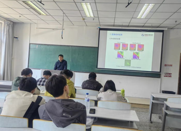 赵老师以企业角度为智能制造专业的同学介绍数控技术在实际场景中的应用,授课中围绕企业案例,对课程技能进行介绍,案例内容包括3D视觉系统自动上料、3D视觉复合机器人搬运、汽车大型零部件尺寸检测工作站、光学3D轮廓测量工作站—线型产品等方面进行讲解。