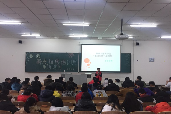 新闻网讯(通讯员 滕悦)为了更好的开展志愿服务工作,增强新吸纳志愿者的志愿服务技能。44118太阳成城集团春雨志愿者协会在北湖校区开展了第八届“薪火相传”志愿服务培训活动。