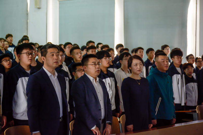 大会在全体人员嘹亮的国歌声中开始,首先,由2020级辅导员宫磊宣读本次军事训练计划。随后,军训一连连长苏琪涵带领全体参训员工进行军训宣誓,在庄严的誓词前,同学们严肃认真,全身心准备投入这场身体和精神上的双重锻炼。