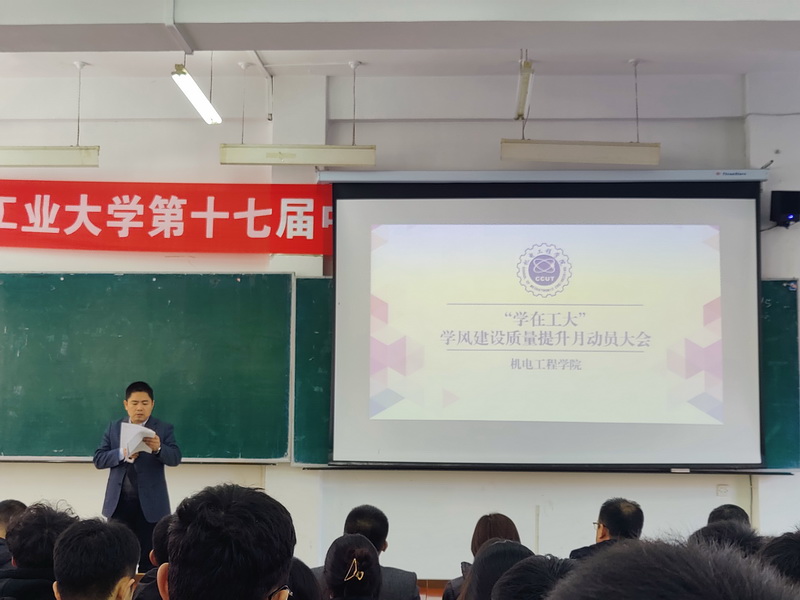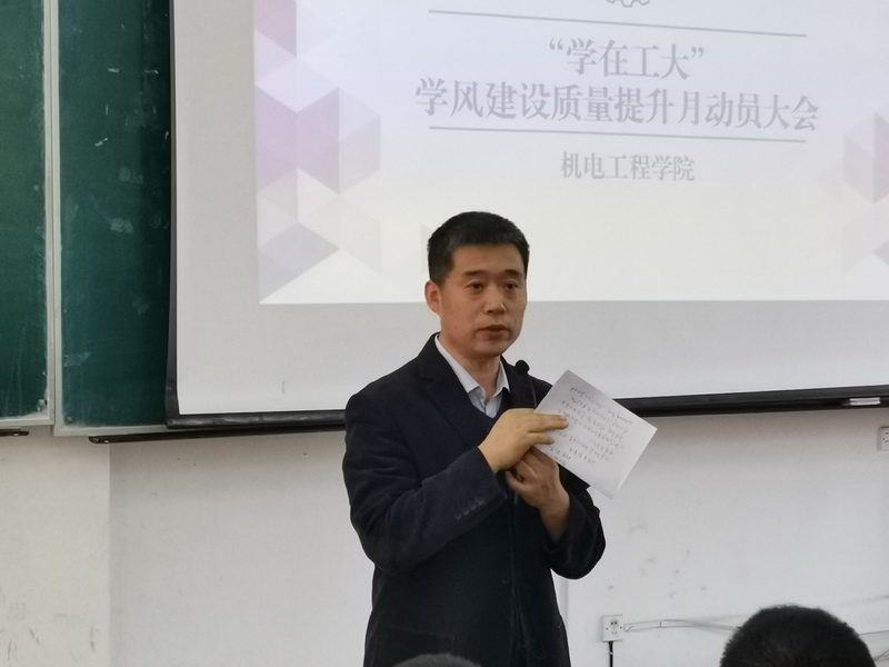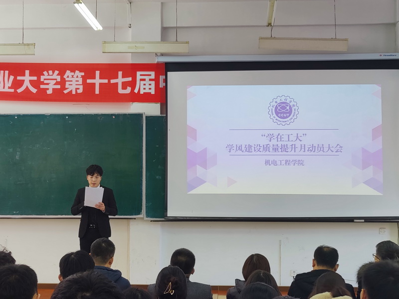 本网讯(通讯员 袁德禄)为了进一步贯彻集团学风建设质量提升月工作要求,加强学风建设,营造浓厚的学习氛围。11月24日中午,公司在南湖校区综合一教室隆重召开“学在工大”学风建设质量提升月动员大会。公司党委书记李奇涵、经理岳晓峰、党委副书记黄向东、公司其他相关领导,各系党支部书记、系主任,全体辅导员和全体员工干部参加了本次大会。