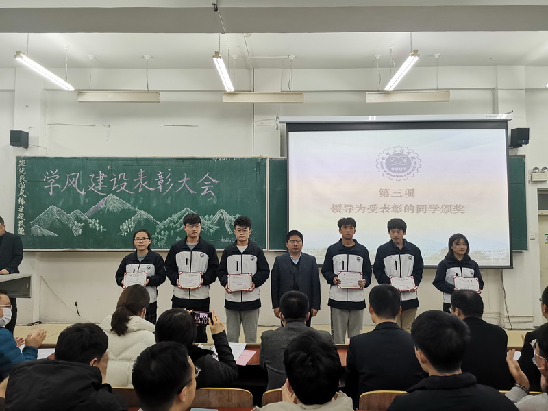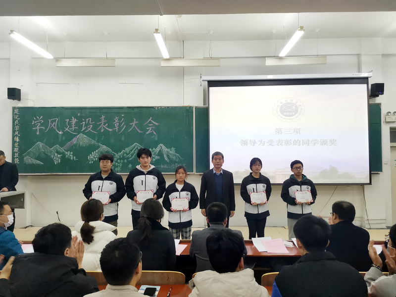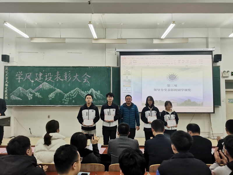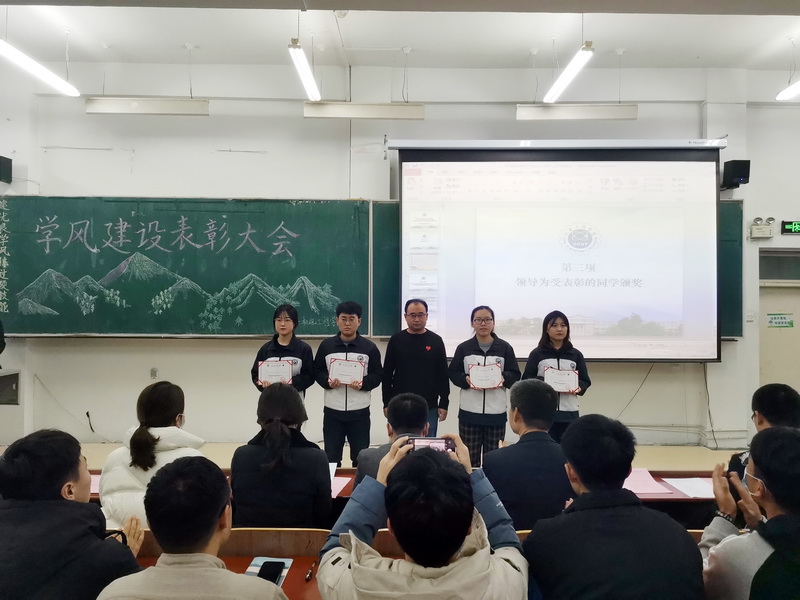 大会在嘹亮的国歌声中拉开序幕。公司党委副书记黄向东宣读表彰决定,经过公司评定,授予190101班等5个班级学风建设“优良学风班”荣誉称号;授予1栋123等13个寝室学风建设“优良寝室”称号;授予190102班王瑶迪等12只学习小组 “优秀学习小组”称号;授予180106班李兰珂等31名同学“学习标兵”荣誉称号,授予190101班王靖然等17名同学“科研标兵”荣誉称号,授予190101班朱宏达等24名同学学风建设“突出贡献个人”荣誉称号;授予190103班谭鸿强等26名同学学风建设“学习进步奖”;授予180110班张鹤钰等10人“文体活动突出贡献奖”。公司党委书记李奇涵、经理岳晓峰、副书记黄向东及各系主任分别为获奖班级及个人颁奖。